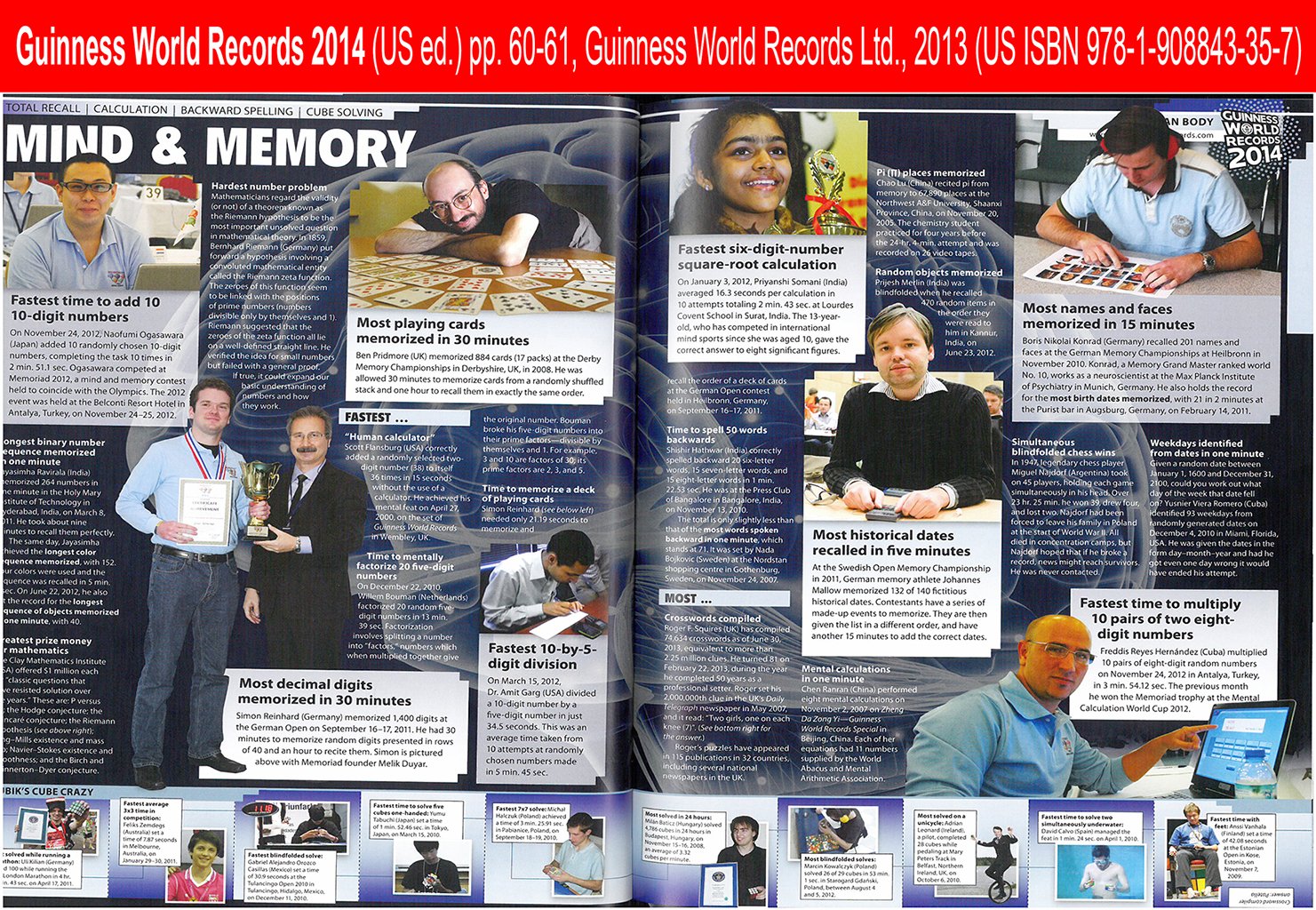 “Memoriad World Mental Olympics” made a big impact in the world and for the first time in 2014 the approved World Mental Records of the Memoriad World Mental Olympics were published in the "Mind and Memory" category of “Guinness “ World Records” including the photographs and the achievements of the competitors with the Memoriad founder, Melik Duyar.